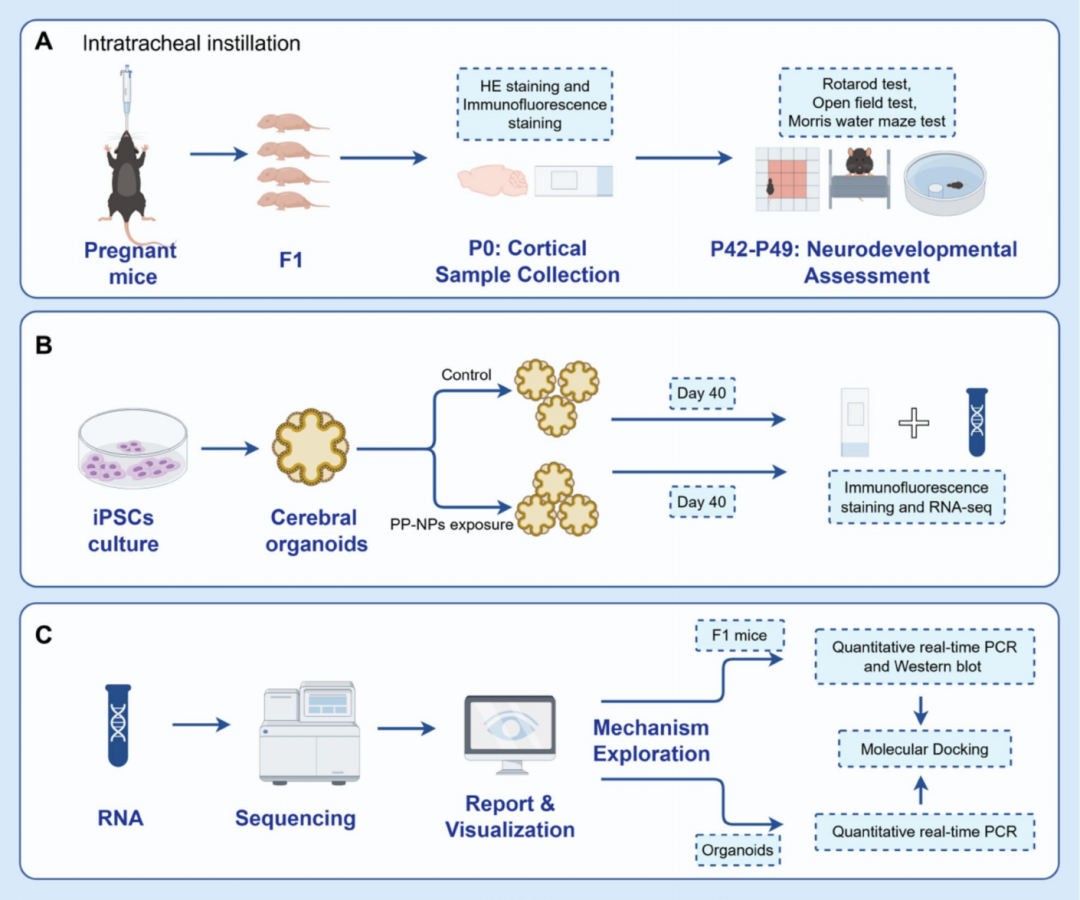 使用小鼠模型和人脑类器官模型,该研究证明 PP-NPs 抑制神经元分化和神经干细胞的维持和增殖,损害认知和运动功能,并改变参与神经发育的关键信号通路。