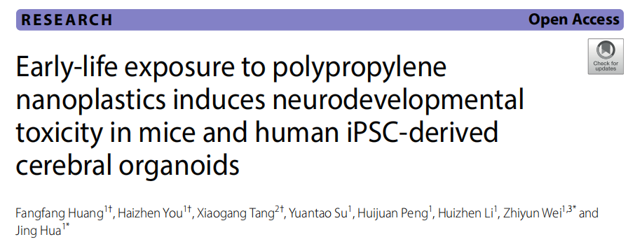 1.Huang, F., You, H., Tang, X. et al. Early-life exposure to polypropylene nanoplastics induces neurodevelopmental toxicity in mice and human iPSC-derived cerebral organoids. J Nanobiotechnol 23, 474 (2025). https://doi.org/10.1186/s12951-025-03561-1