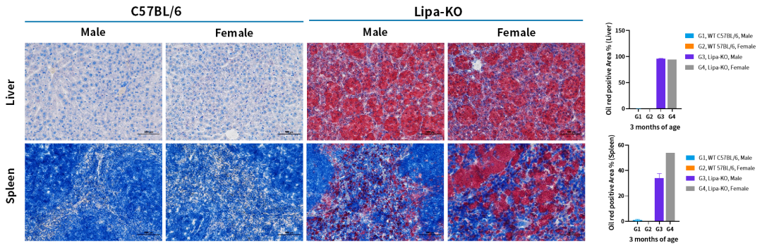 南模生物长期助力罕见病基因治疗研究,构建了Lipa-KO溶酶体酸性脂肪酶缺乏症模型,助力溶酶体酸性脂肪酶缺乏症相关机制研究需求,为相关药物的药效评估和安全性评价提供了强有力的工具。
