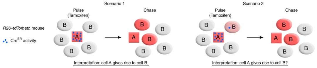 通常,细胞或组织中的特异性 Marker 意味着启动子的活性在这种细胞类型中相对较高,而并非在其他细胞中完全不表达。在其他细胞中,目的启动子也可能被弱激活,这种现象也被叫做异位表达。异位表达对谱系追踪的影响很大,常常会导致一些关于细胞命运的争议。