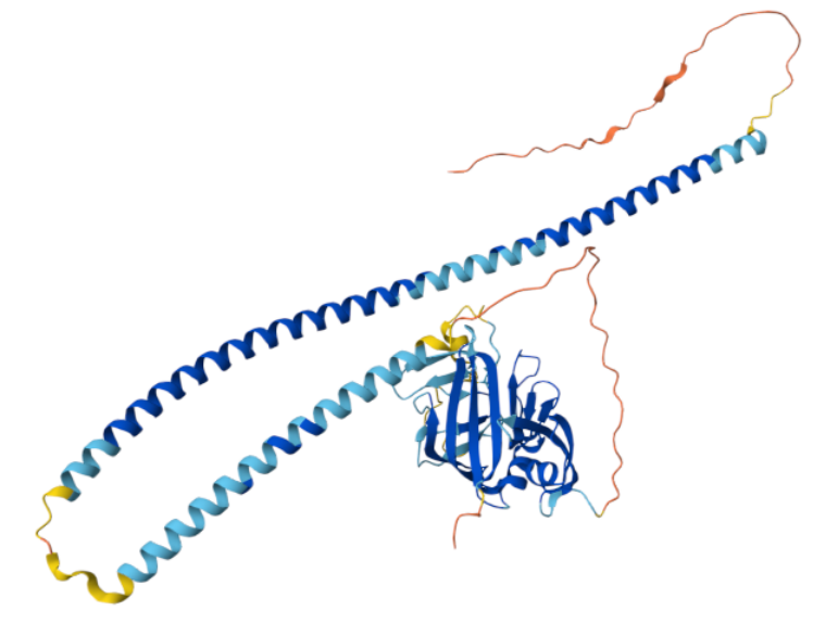 ANGPTL3的发现 1999年,研究人员发现了一种由460个氨基酸组成的,包含一个N端螺旋结构域和一个C端纤维蛋白原样结构域的多肽——ANGPTL3,并证实其在小鼠和人类肝脏中均有表达。研究者曾在一个中度肥胖、高血糖及高胰岛素血症的小鼠模型——KK小鼠亚系(KK/San)中,观察到ANGPTL3突变纯合个体出现低脂血症,由此确立了该蛋白在脂质代谢中的潜在作用[1]。 图1. ANGPTL3结构预测(数据来源:Alphafold)。