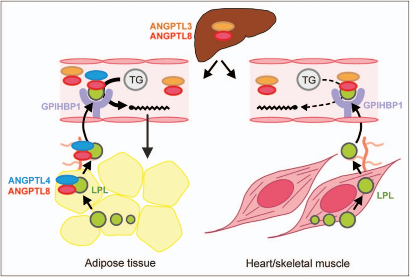 图2. ANGPTL3在血浆甘油三酯代谢中的功能[3]。